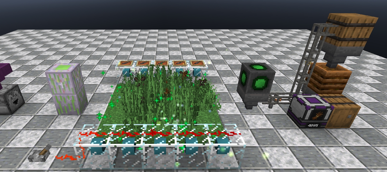 Now all that needs doing is to load it up and turn it on. In testing, an initial input of 9 stacks of Bone Meal produced a healthy 4500 Straw with all of the seeds being converted to more Bone Meal to keep it running a bit longer.