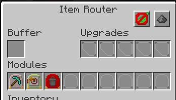 The Sender is configured to send only Obsidian up to Router A. The Void Module takes care of the pesky Cobblestone. Poof.