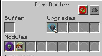 And here we have our collection router. The Vacuum Module is left on the default Direction: All setting, but is filtered to Whitelist Flux Dust. This prevents it from accidentally picking up our Redstone Dust before it can convert.