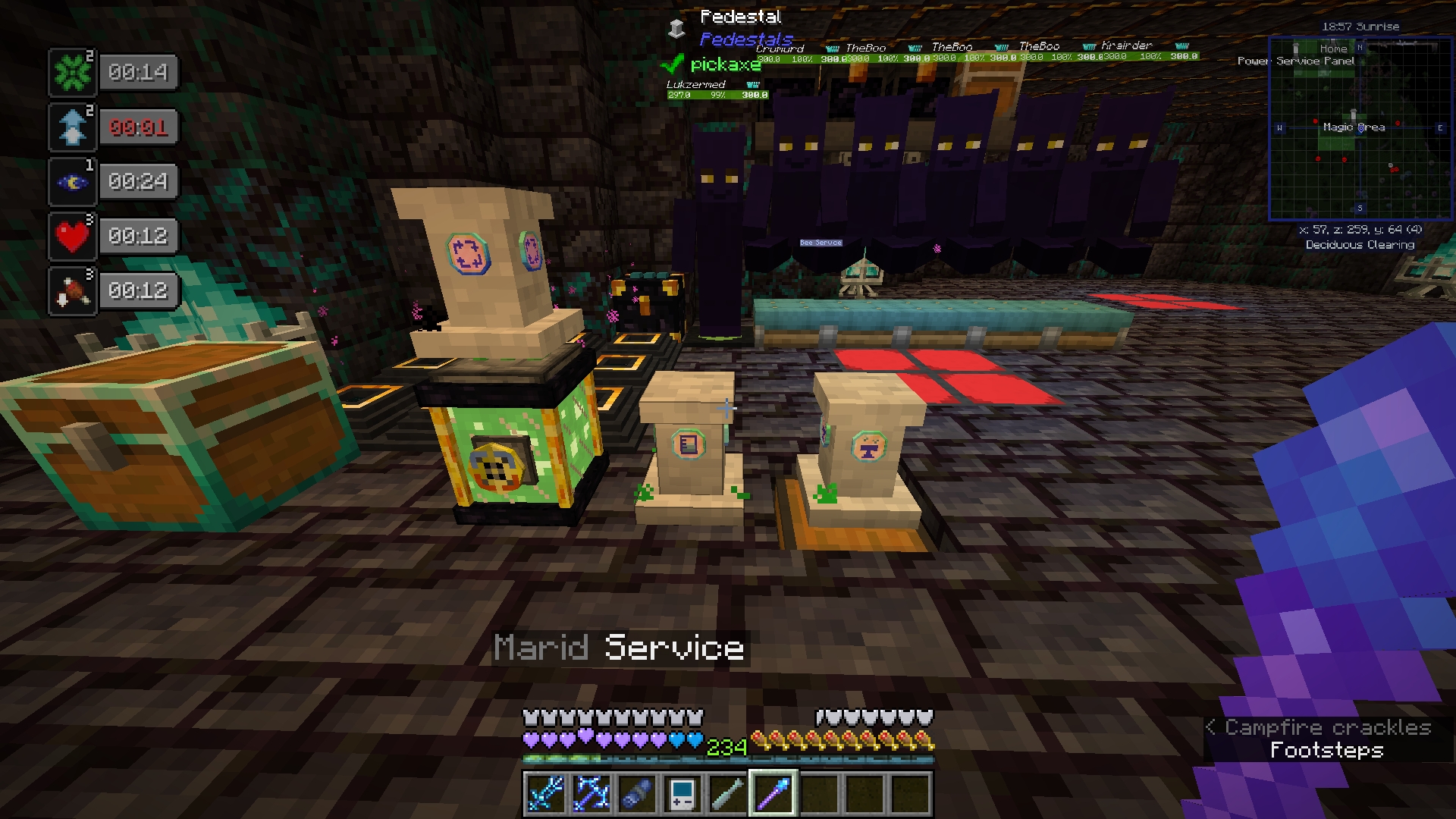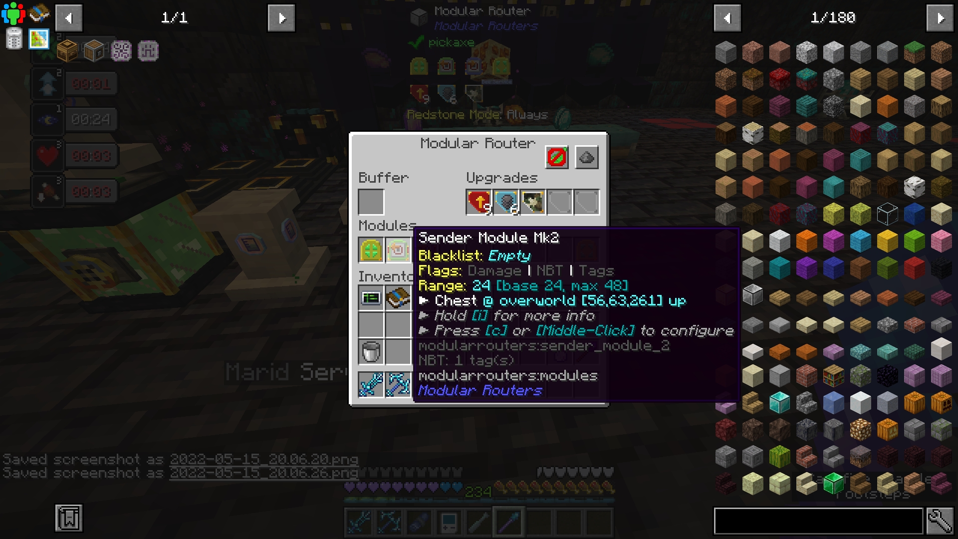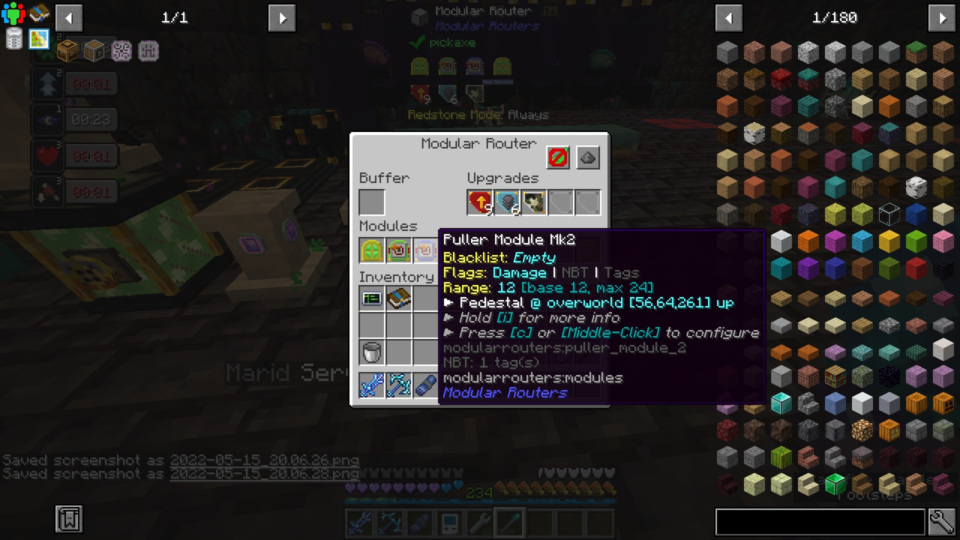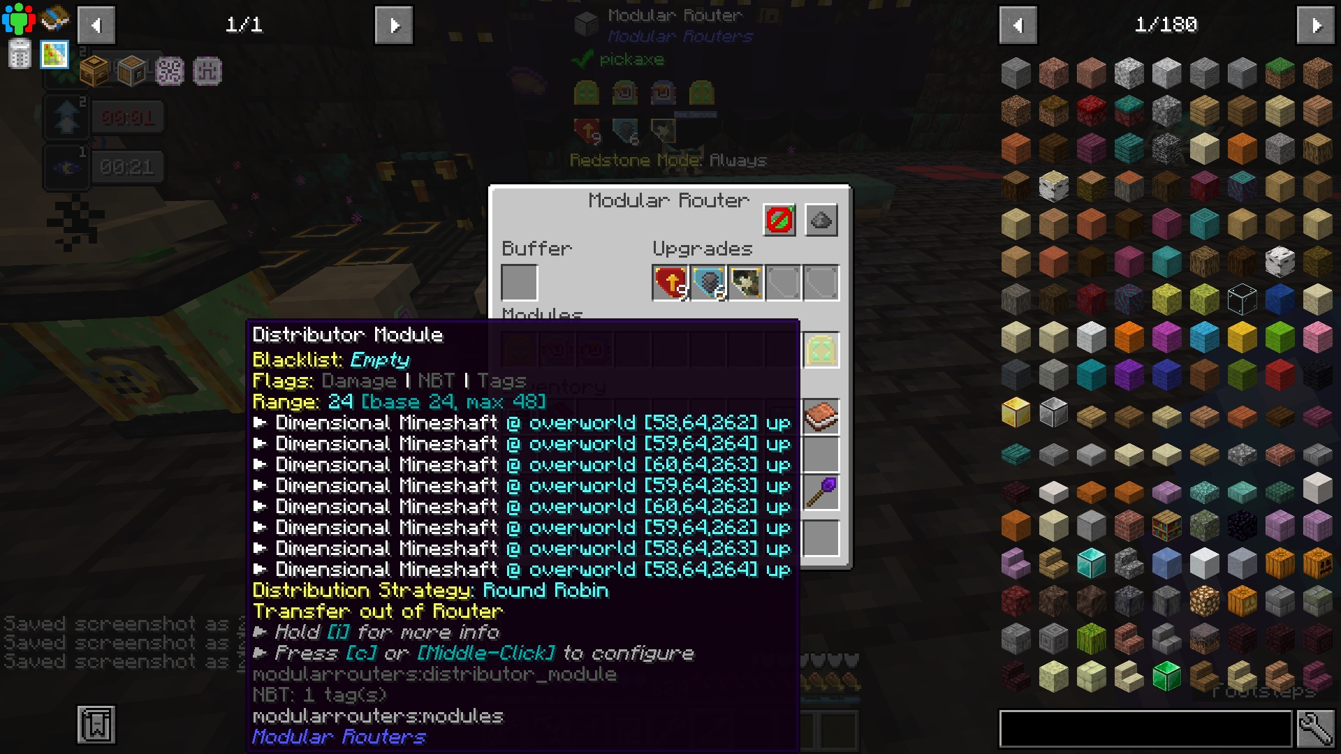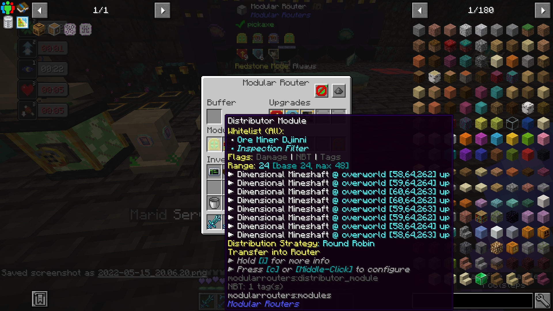 Not with the power of several mods in Enigmatica 6, that is! Using a combination of Modular Routers and Pedestals, we can automatically repair our miner djinns so they keep bringing us ores from wherever it is they go. These instructions will scale up to 8 dimensional mineshafts. If you want to add more, you can add more distribution modules on either side of the repair, or add more routers.