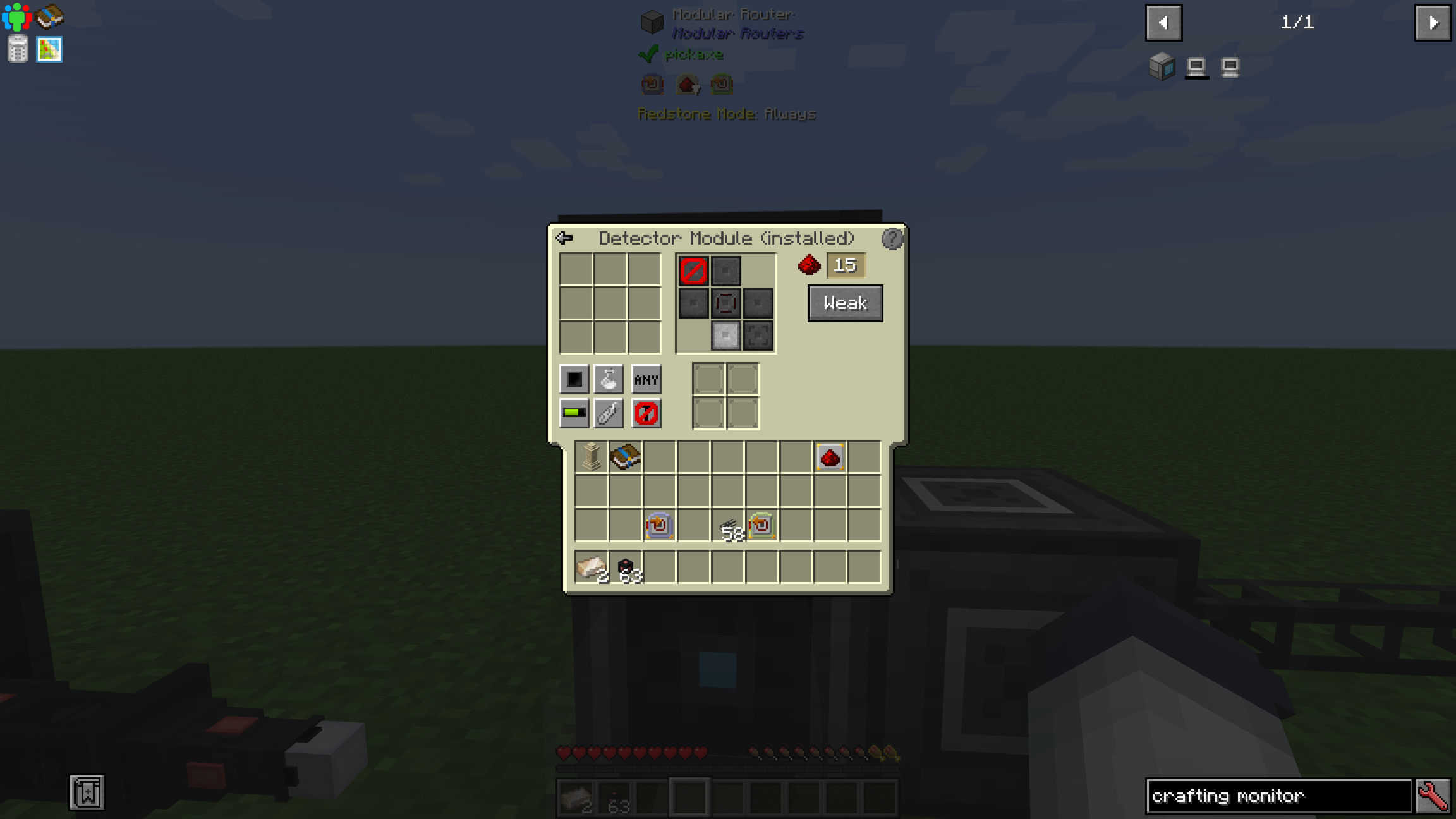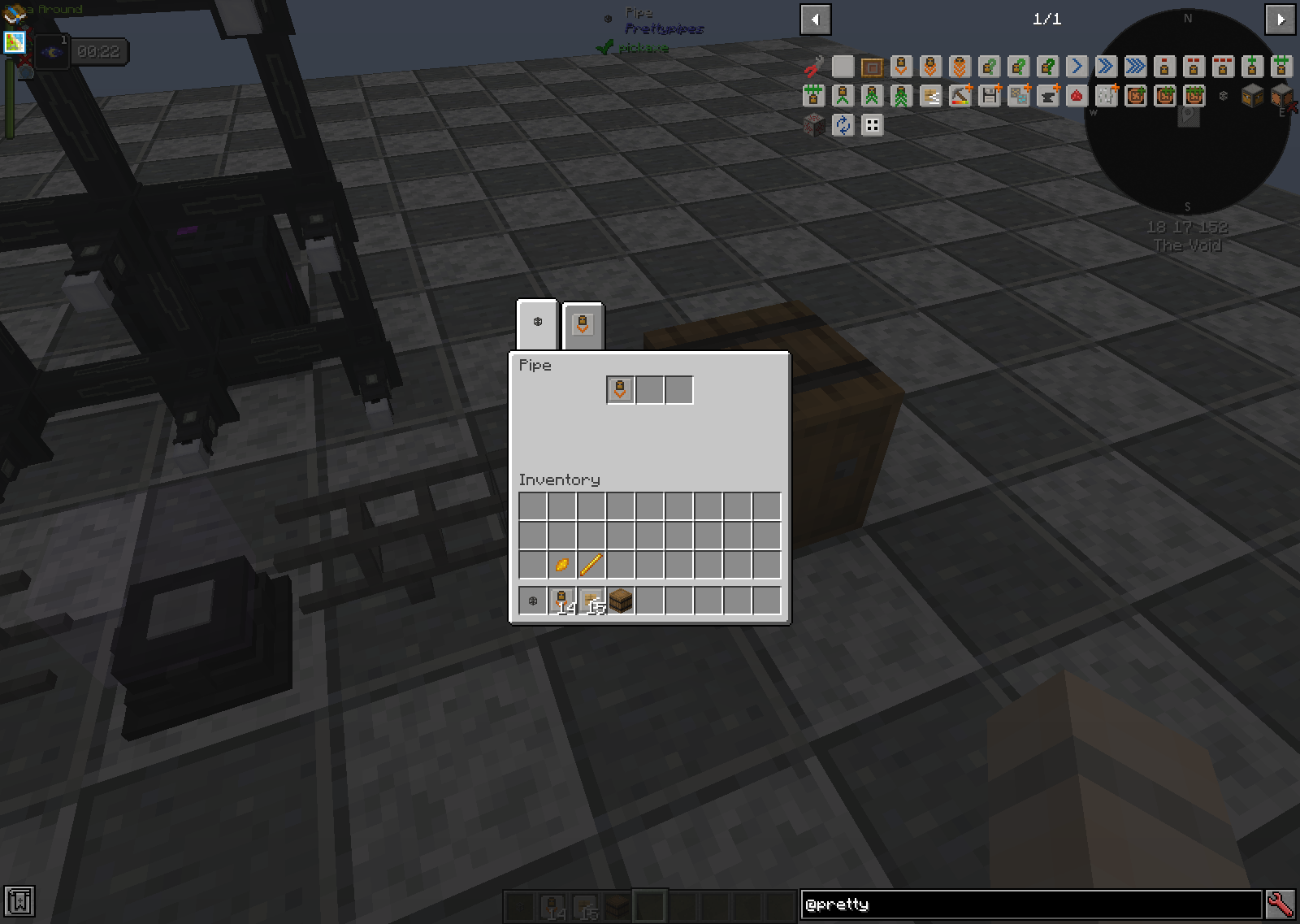 Batch Crafting is pretty decent, but we can do better. Requesting these items on demand with Refined Storage will make crafting a breeze. Pretty Pipes is still going to be integral to our automation, however, due to one of it's more interesting properties: Comparators can read the contents of the pipe.
