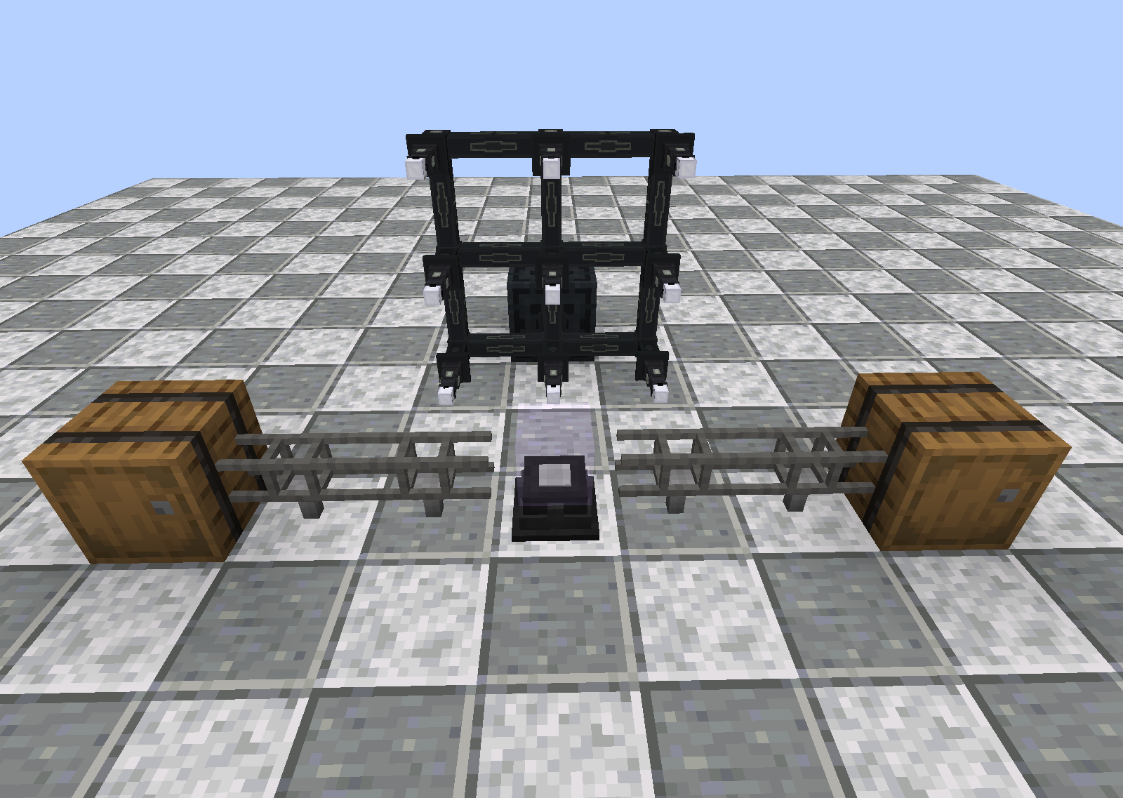 That's it! Batch crafting can now commence. As noted above, however, this can only handle one recipe type at a time. If we were to dump Iron, Gold, and Blaze Rods into the chest to batch craft both Energizing Steel and Blazing Crystals, Pretty Pipes would attempt to stick one of each in the Orb and the crafting would cease.