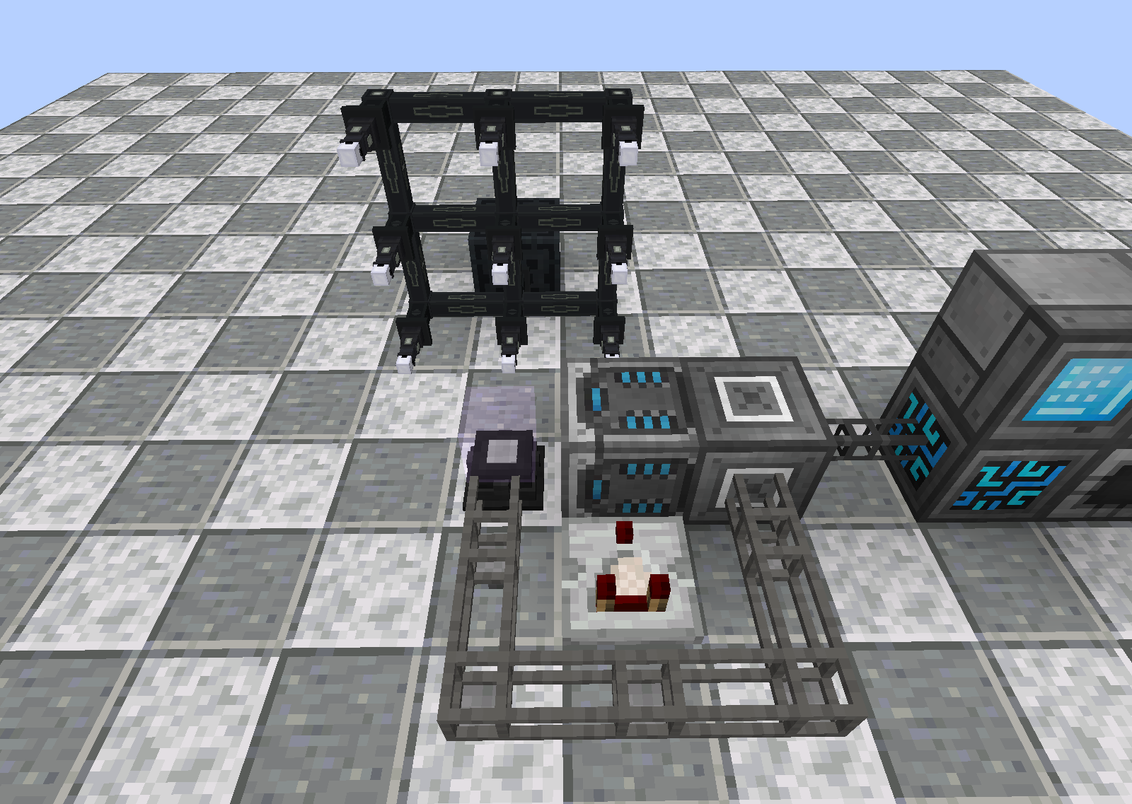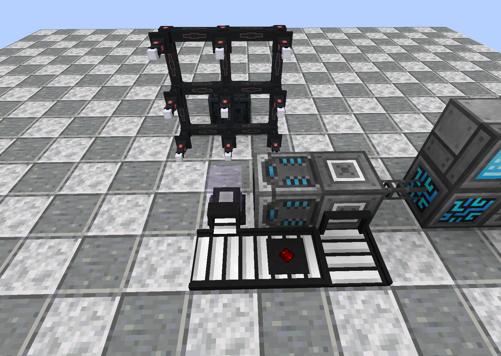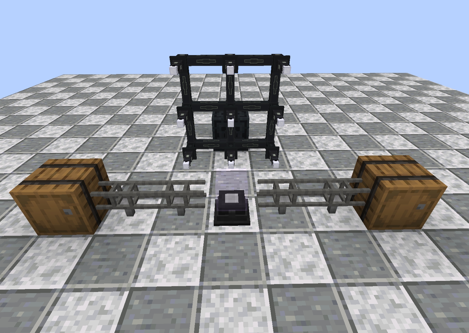 This should need little explanation at this point. The Upgrades themselves are installed on the Conveyor Belts by right clicking with the upgrade item. The extraction and insertion pull from the Orb and insert into the Interface, respectively. And the Detection Upgrade causes the belt it's installed in to emit Redstone when items pass over it. This triggers the pulse needed to send the next set from RS.