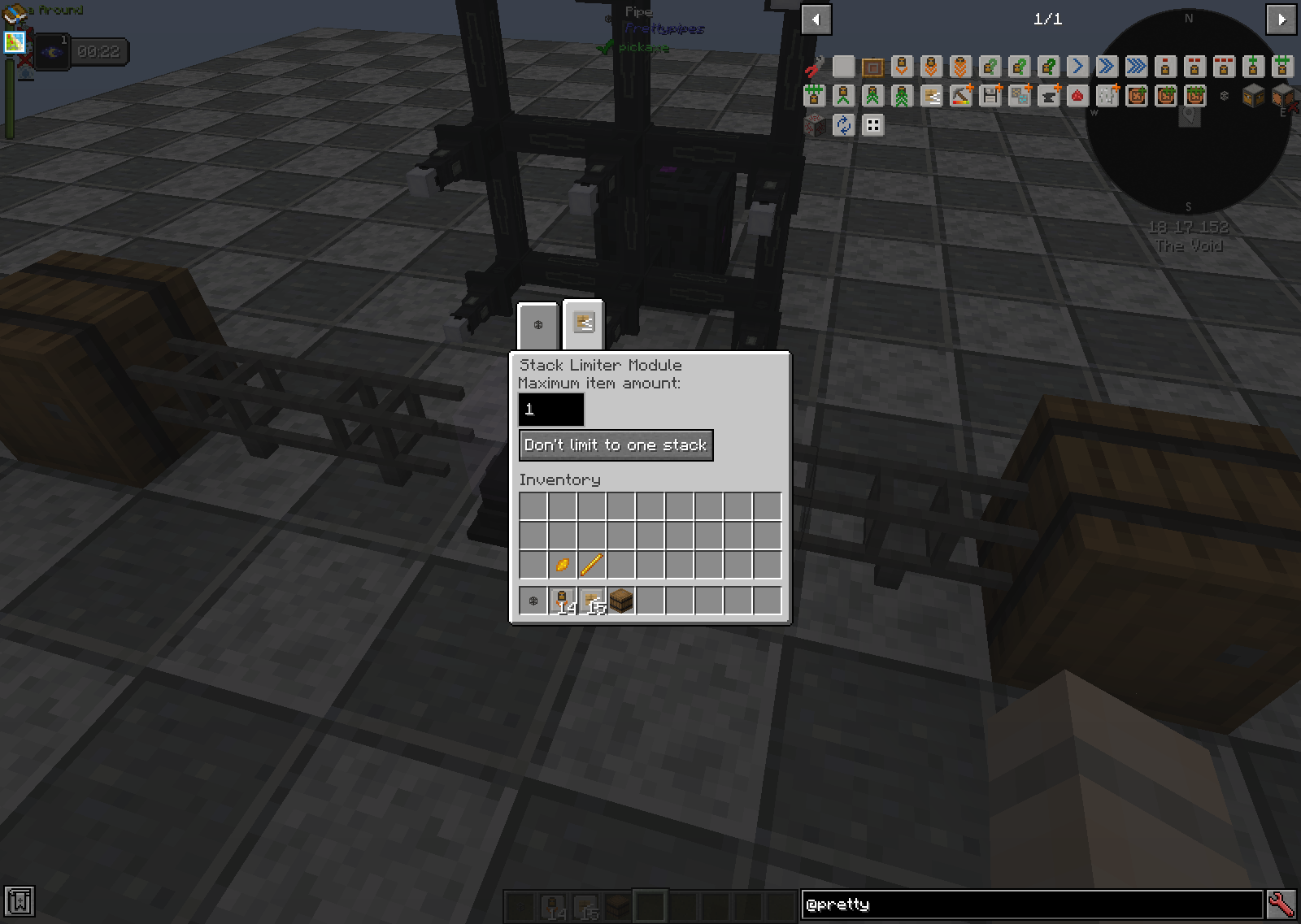 Now, right click the Stack Limiter Module onto the pipe leading into the Energizing Orb. Right click again with an empty had as this one will need to be configured.