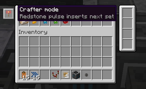 First, the Refined Storage Crafter itself has it's Crafting Mode set to "Redstone pulse inserts next set". This allows Refined Storage to insert a single set to begin, but only insert the next if the crafter receives a Redstone signal. So if we queue up more than one, it doesn't try to insert all of the items at once. Just one craft, then another with each pulse.